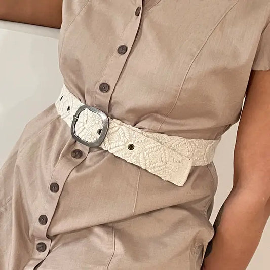 Folklorica Floral Cream Embroidered Wool Belt