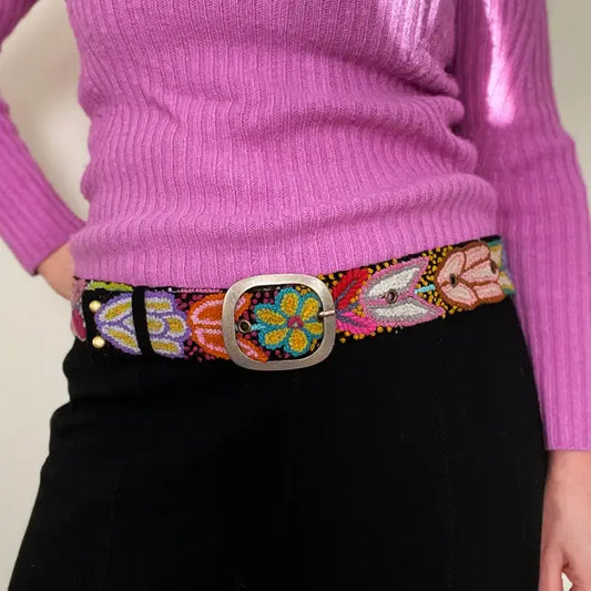 Flower Power Embroidered Wool Belt