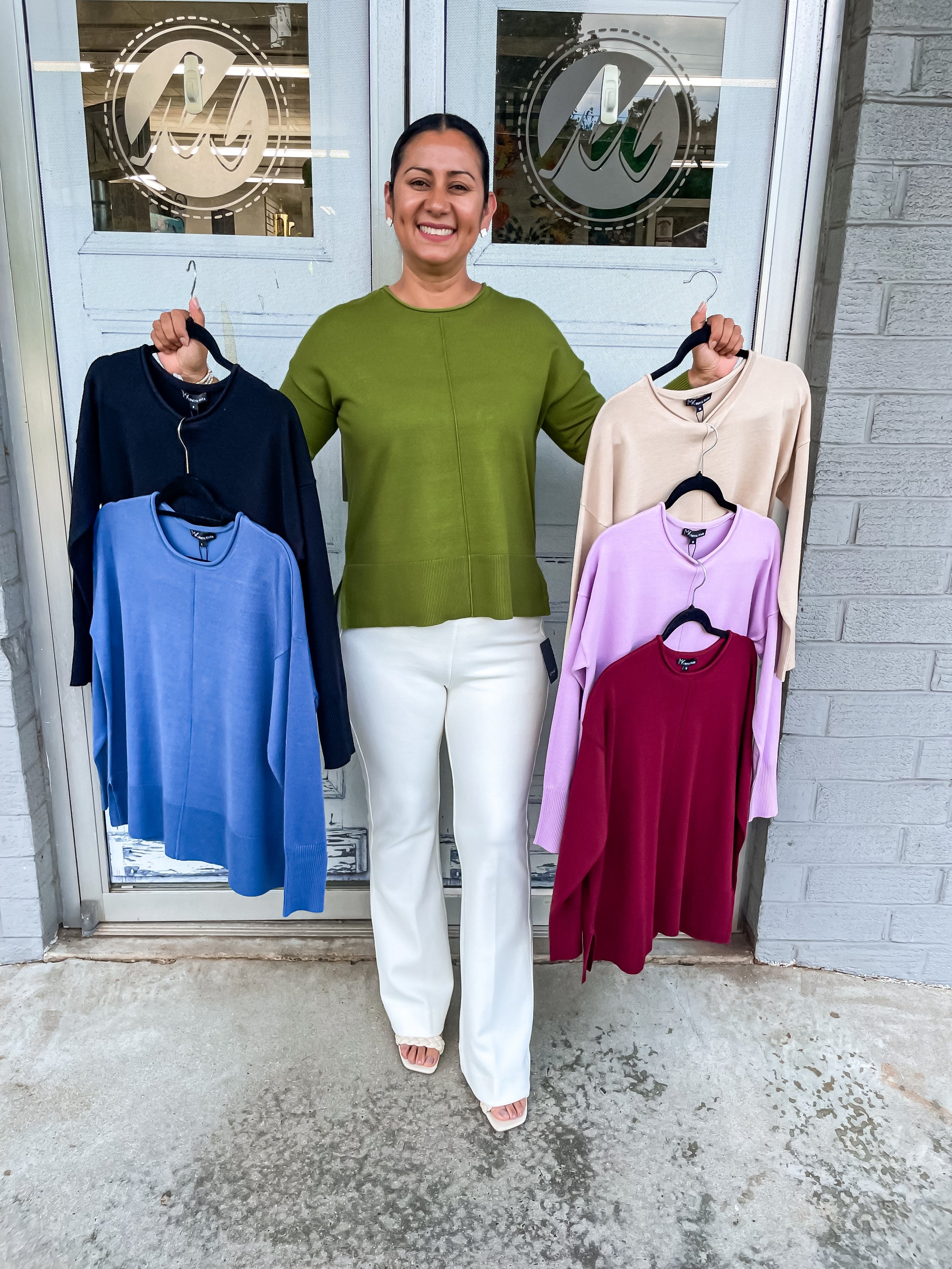 The Avril Pullover offers cozy oversized comfort with a stylish rolled edge neck trim that adds a subtle, refined touch. Perfect for layering or wearing on its own, this versatile piece combines relaxed fit with effortless style to keep you comfortable throughout the day.