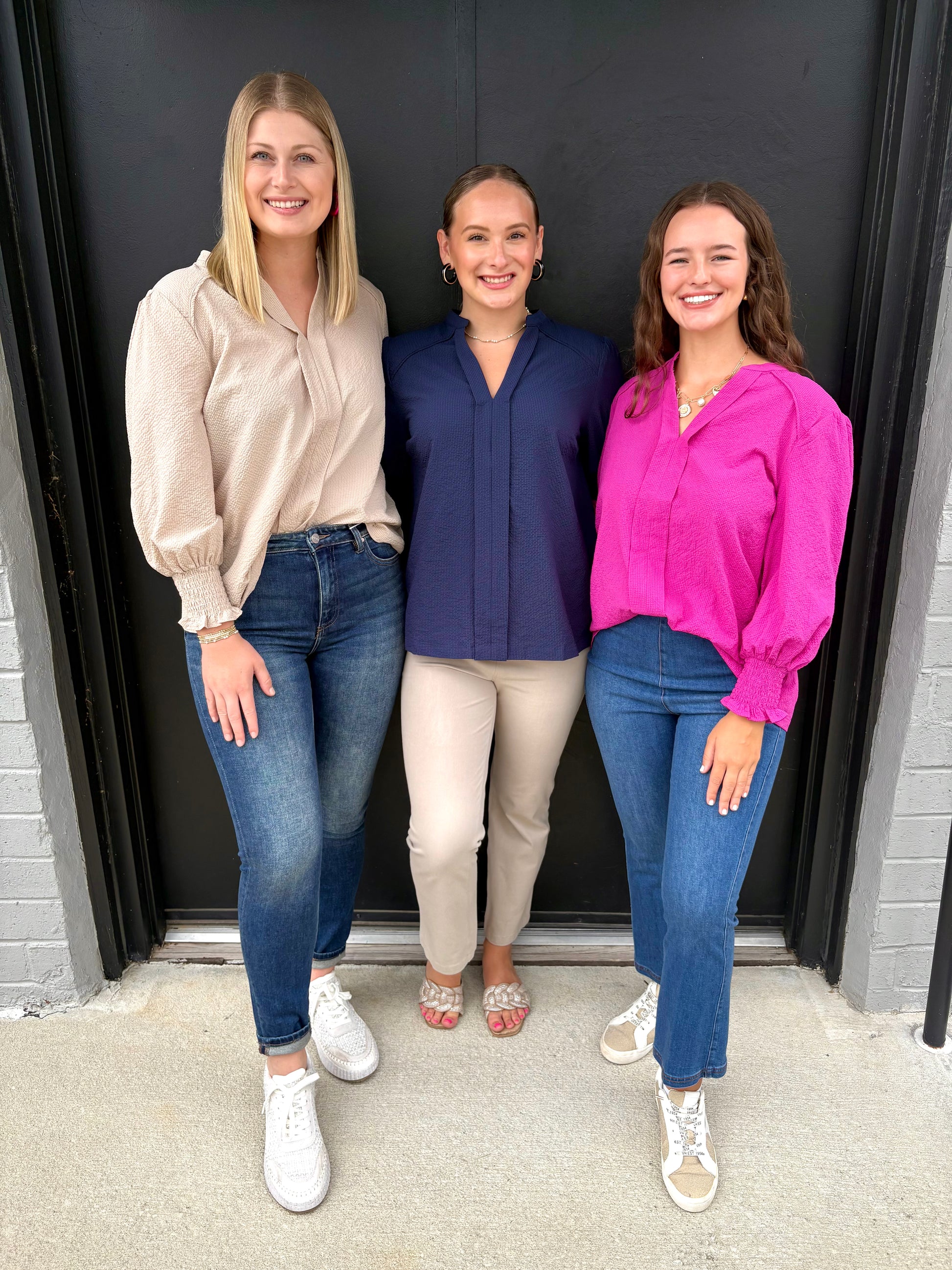 The Chrissy Top offers effortless style with its lightweight, no-lining design and textured fabric that adds subtle dimension. Featuring a chic split neck and refined piping detail, this top combines comfort and elegance for a versatile look perfect for any occasion.