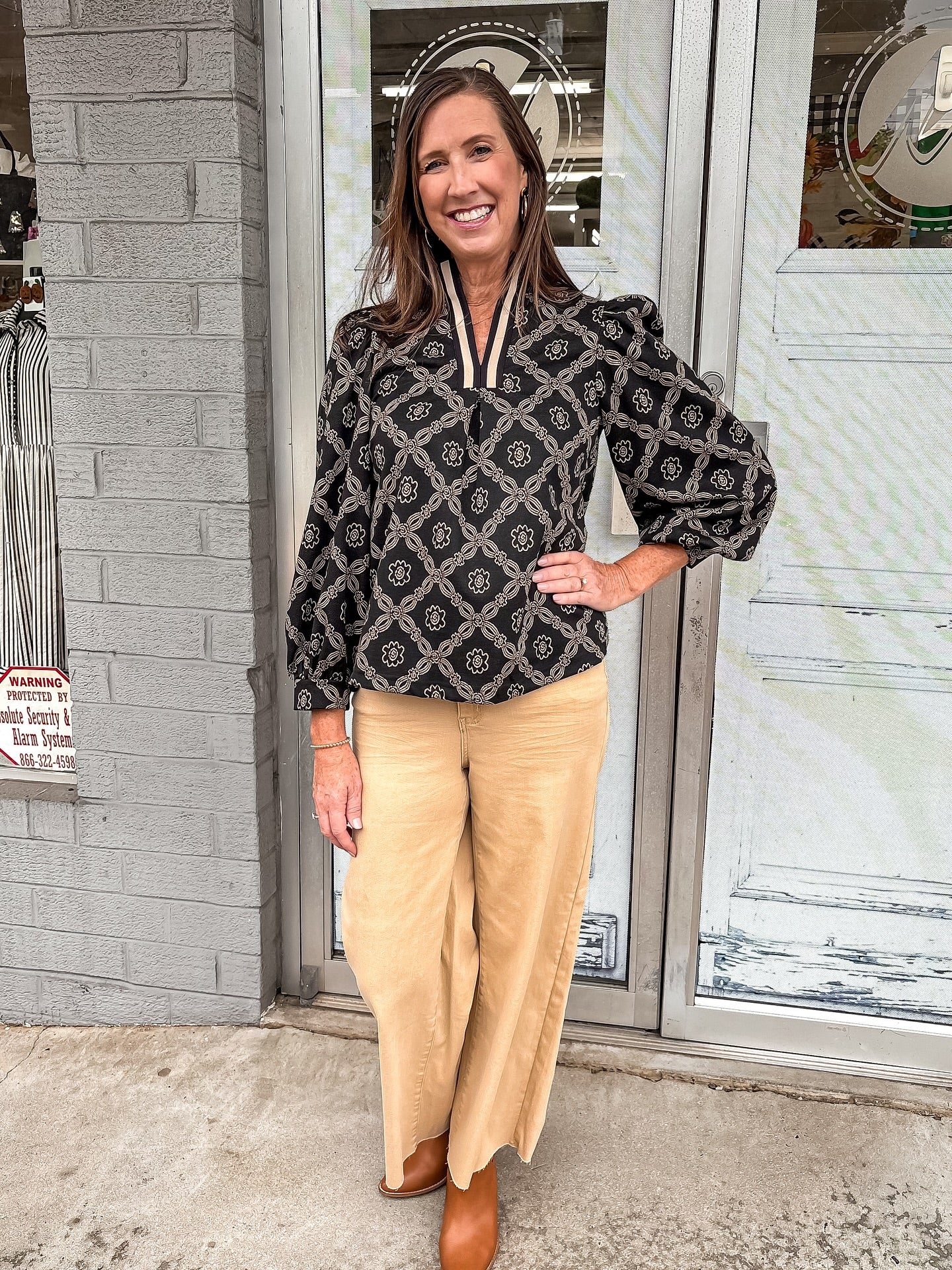 Embrace the season with the Hanson Top, featuring a warm fall print that adds effortless style to your wardrobe. Crafted for comfort and designed to flatter, this top pairs perfectly with your favorite jeans or skirts. Elevate your autumn looks with a piece that blends coziness and fashion seamlessly.