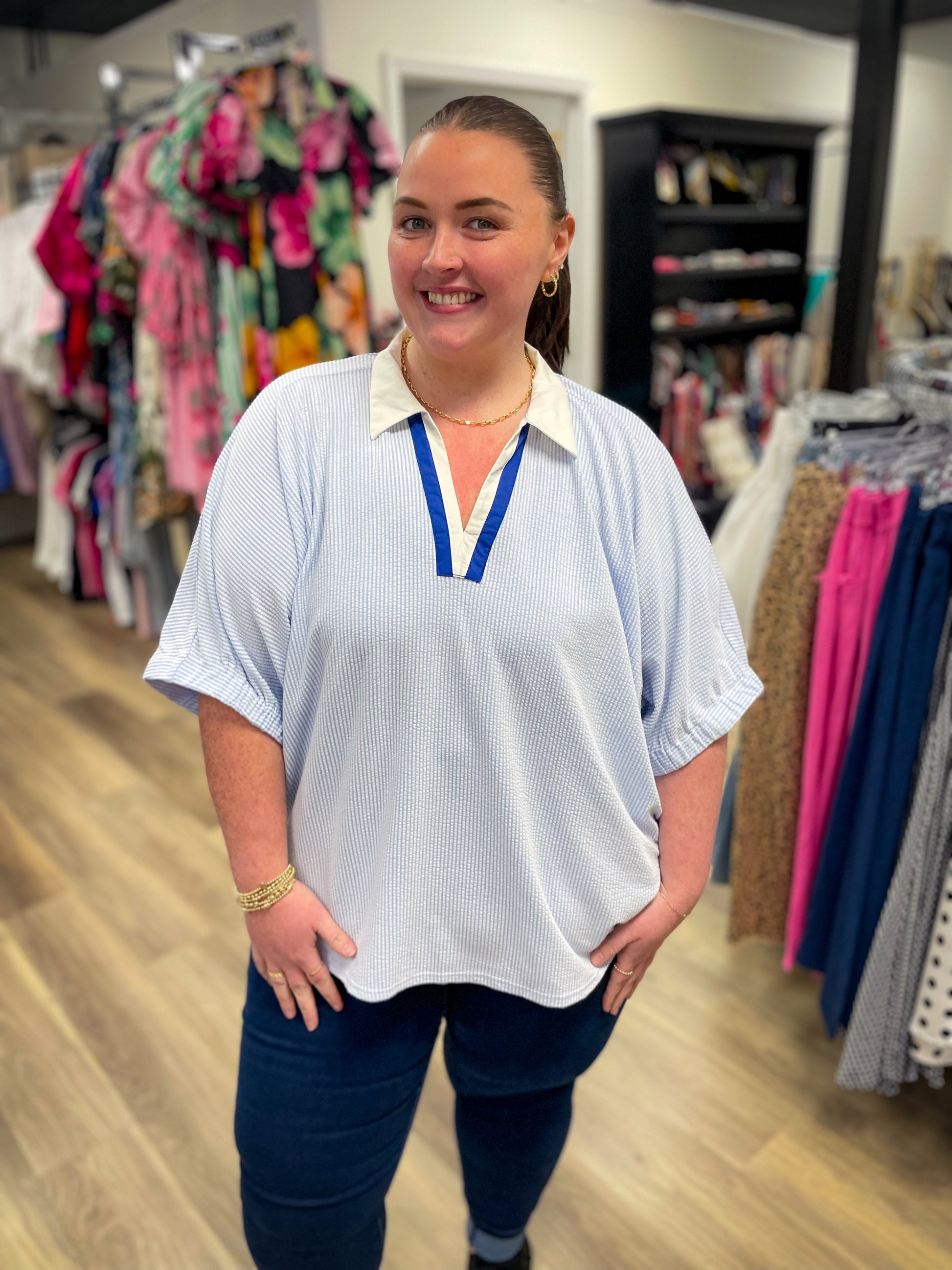 The Lennon Top brings effortless sophistication to your everyday wardrobe. This versatile blue piece features a flattering V-neck design that elongates the silhouette and works beautifully layered or worn solo. Perfect for transitioning from office to weekend, the Lennon Top pairs seamlessly with jeans, skirts, or trousers. Its timeless style and comfortable fit make it an essential staple you'll reach for again and again.