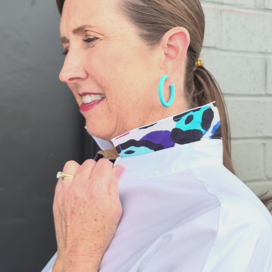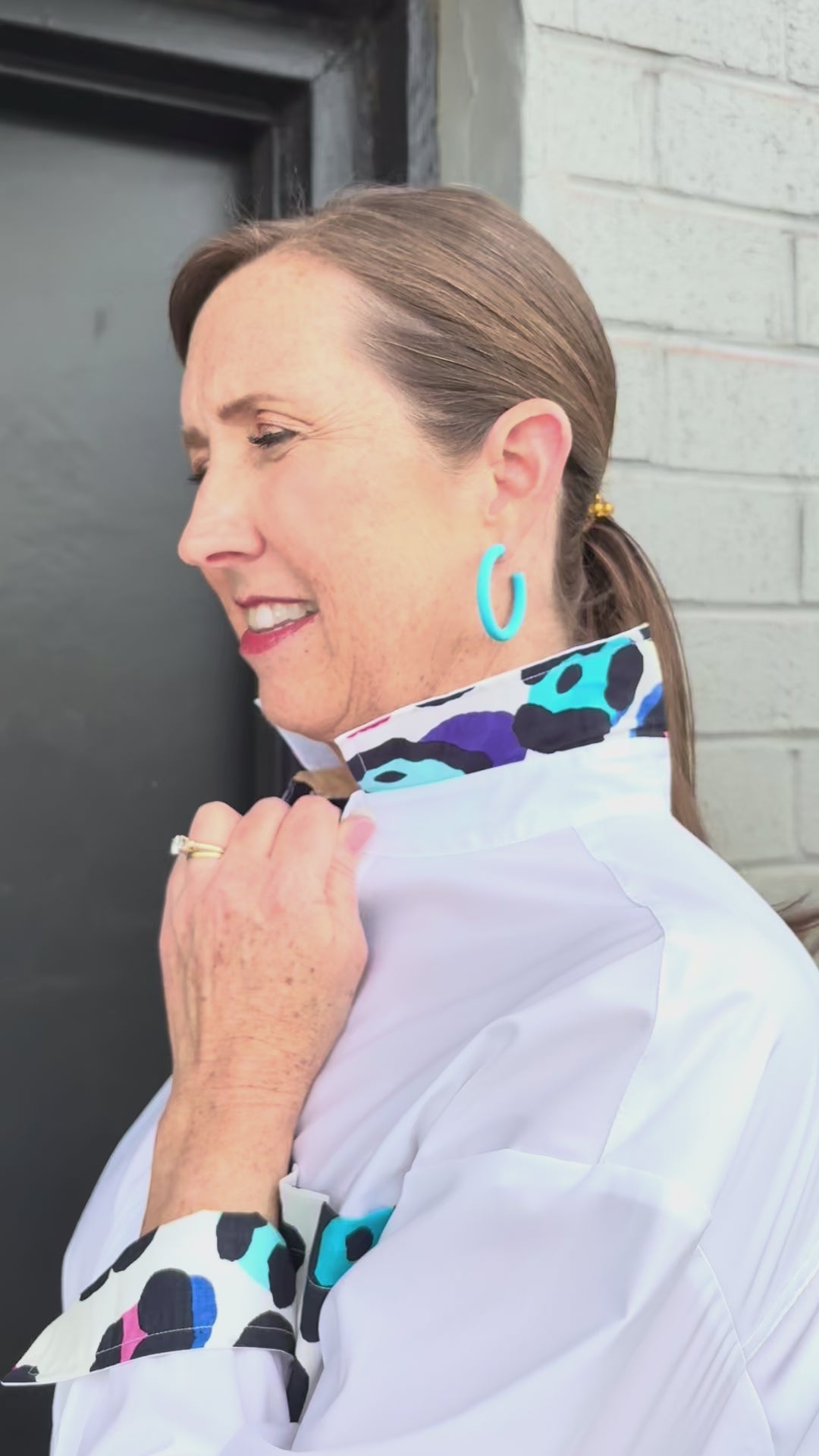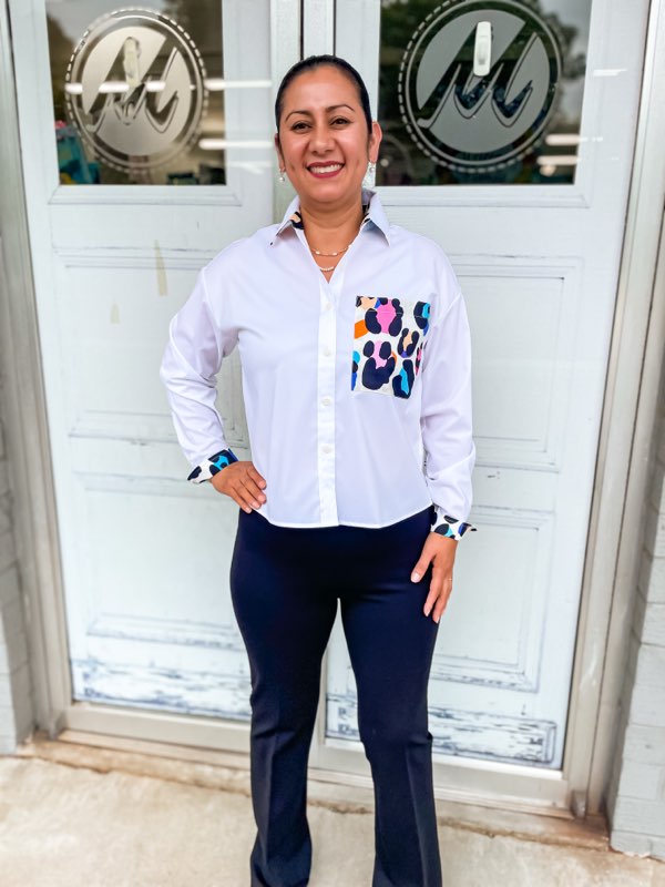 Marina’s effortless silhouette meets a bold, playful edge. With a boxy, relaxed fit and a shorter length, this piece pairs perfectly with high-waisted pants or shorter torsos. This edition brings a pop of something special: a contrast print on the oversized pocket, echoed beneath the collar, under the cuffs and along the inside of the collar stand. The print is crafted from crosshatch cotton slub with the texture and look of linen, while the body is made from crisp cotton poplin — because thoughtful details are what make Foxcroft unique.