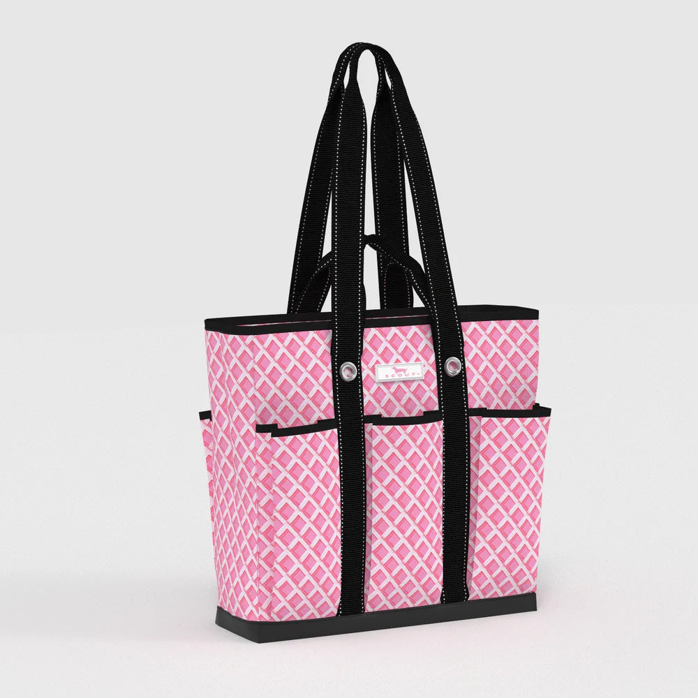 - Stable, burst-proof bottom allows tote bag to stand up on its own