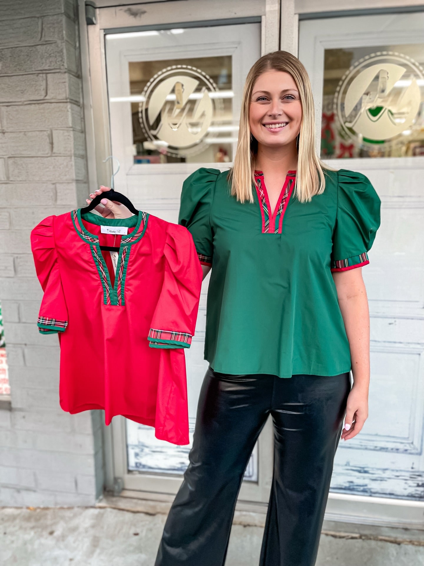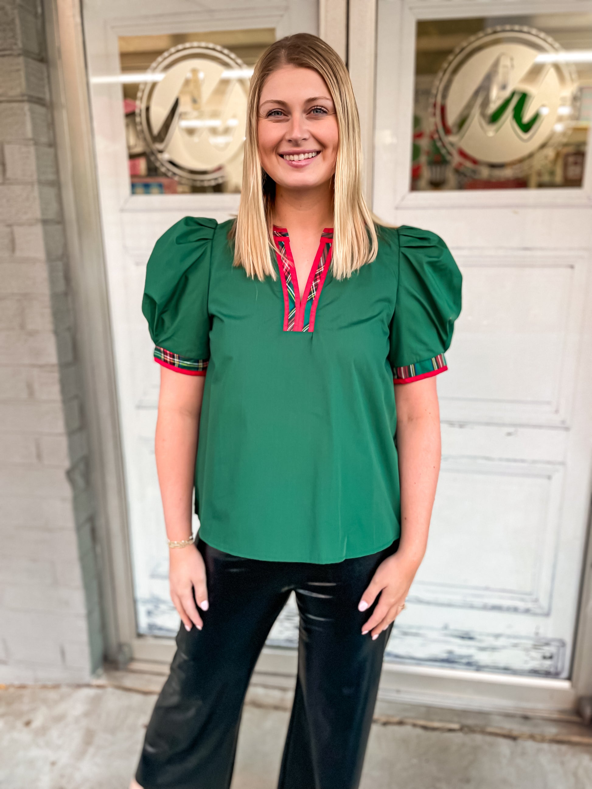 Elevate your wardrobe with the Sephira Top, a chic short pleated puff sleeve blouse designed for effortless style. Its contrast accent V-neck band adds a striking detail, while the lightweight woven fabric ensures comfort without transparency. Unlined and breathable, this top is perfect for warm days or layering, combining fashion and ease in one versatile piece.