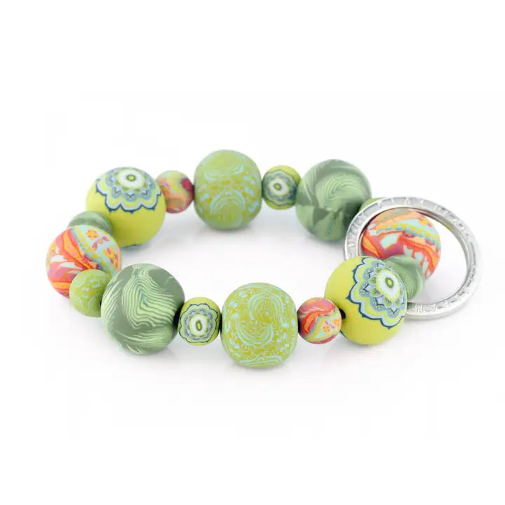 This Small Bead Keychain is a fresh new take on our classic style and features polished metal spacers for a sleeker look. - Handcrafted 15mm and 10mm polymer clay beads - Ultra-durable 1.5mm elastic cord for long-term use - Lead-free, nickel-free, and cadmium-free - 10 & 15mm Clay Beads - Elastic stretch style - One size fits most
