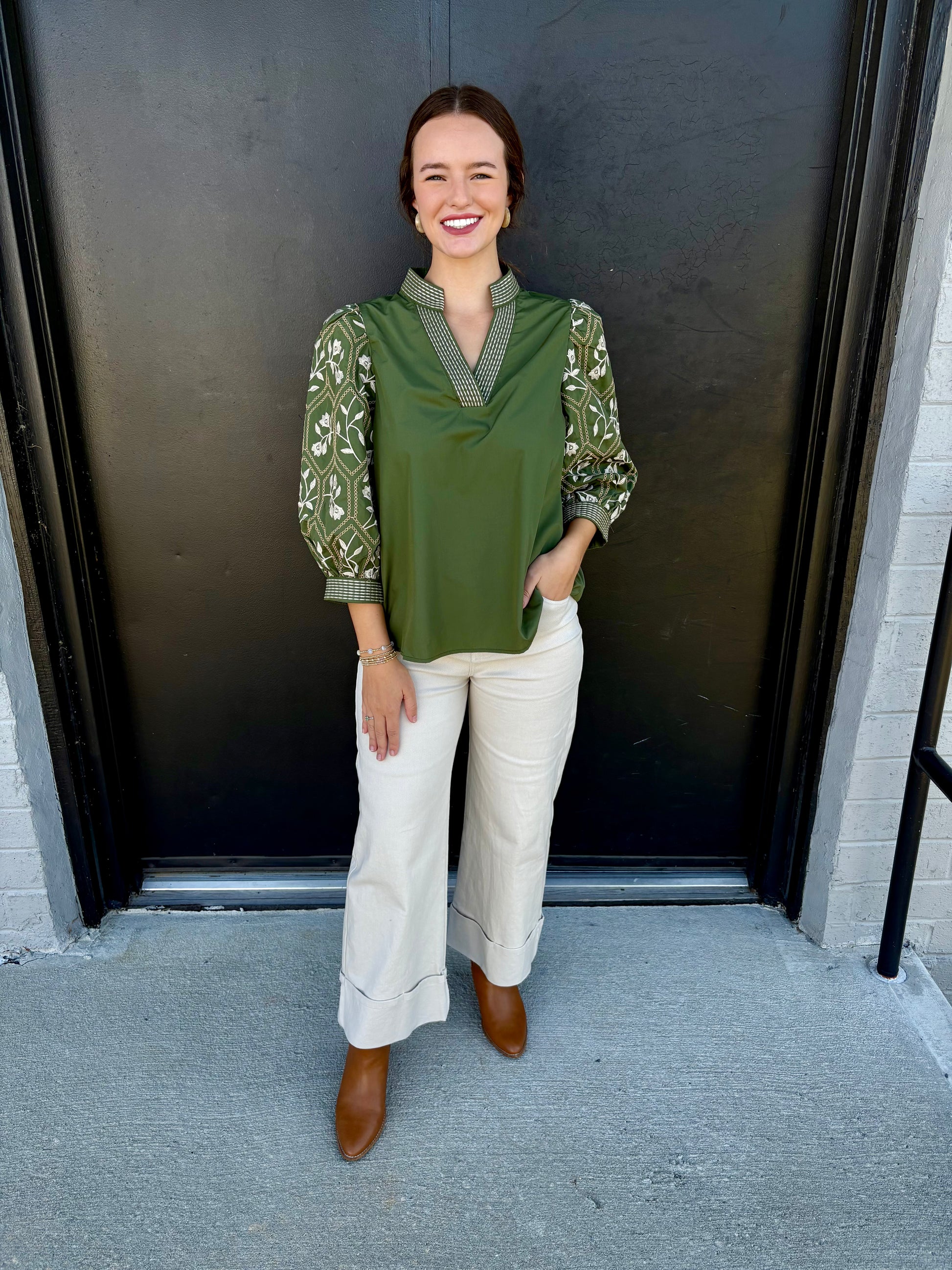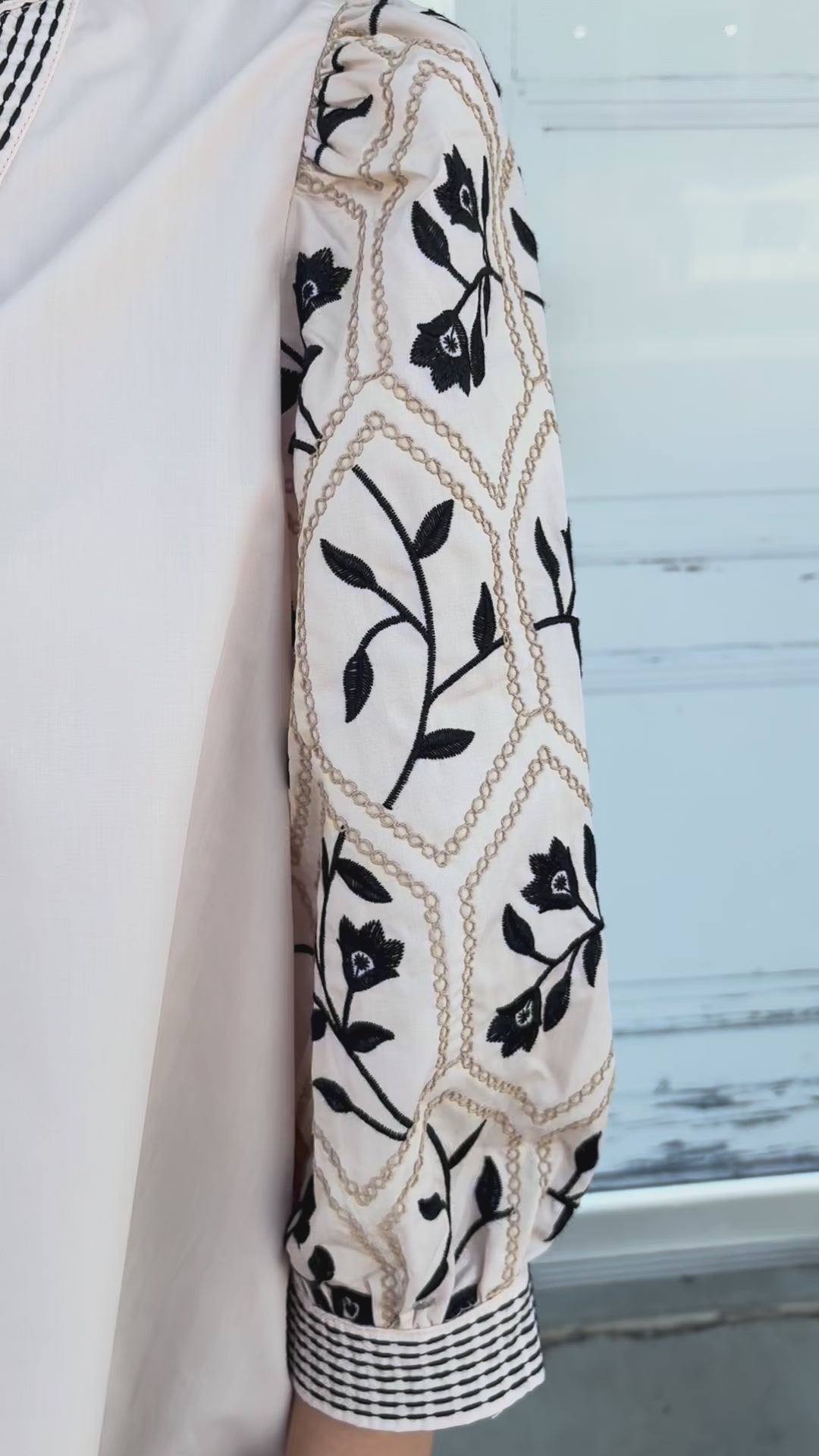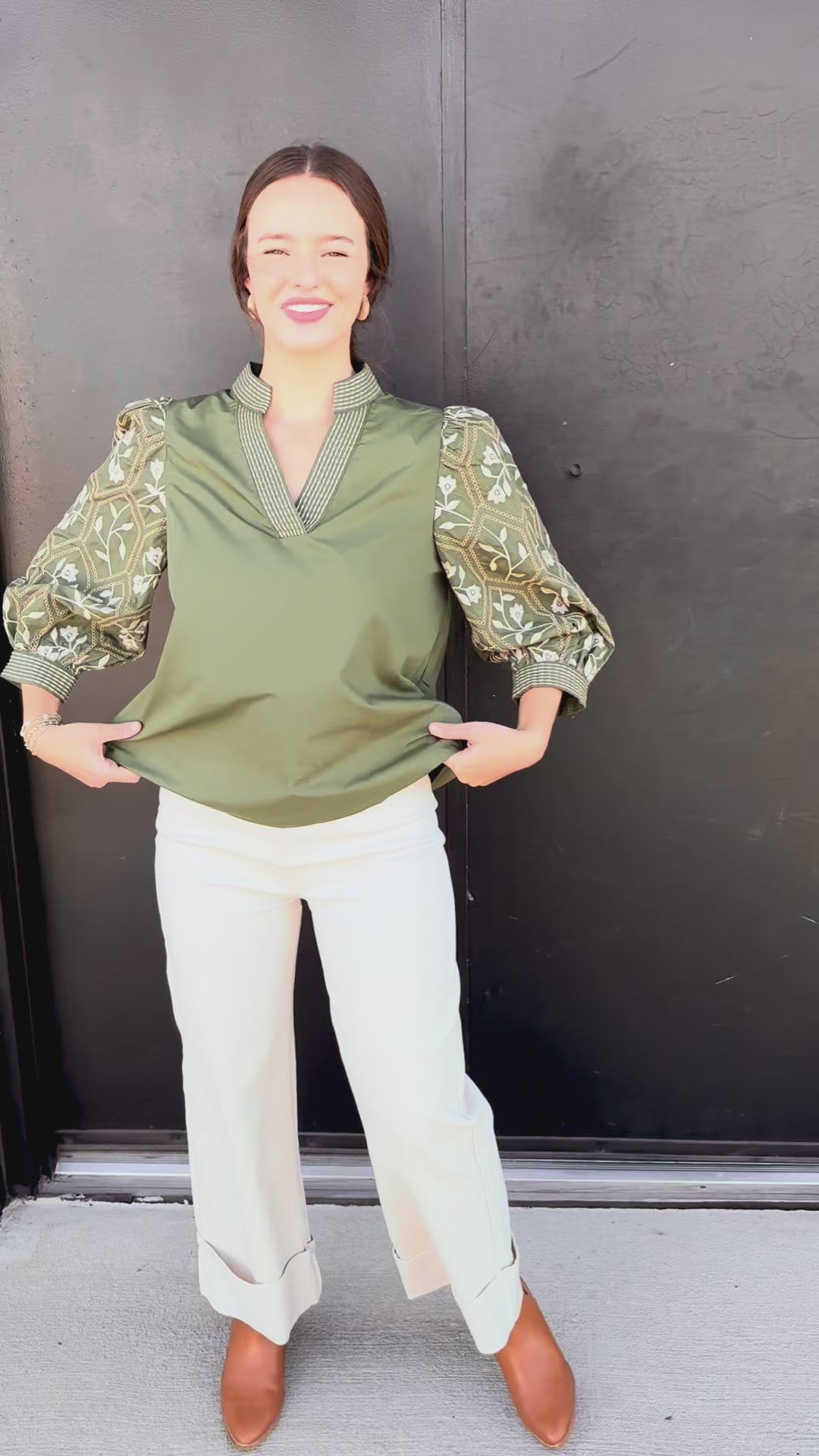 Elevate your wardrobe with the Sylvaine Top, featuring stylish printed sleeves that add a unique touch to any outfit. This top combines comfort and fashion effortlessly, making it perfect for both casual days and special occasions. Embrace a look that stands out with subtle yet eye-catching details designed to enhance your everyday style.