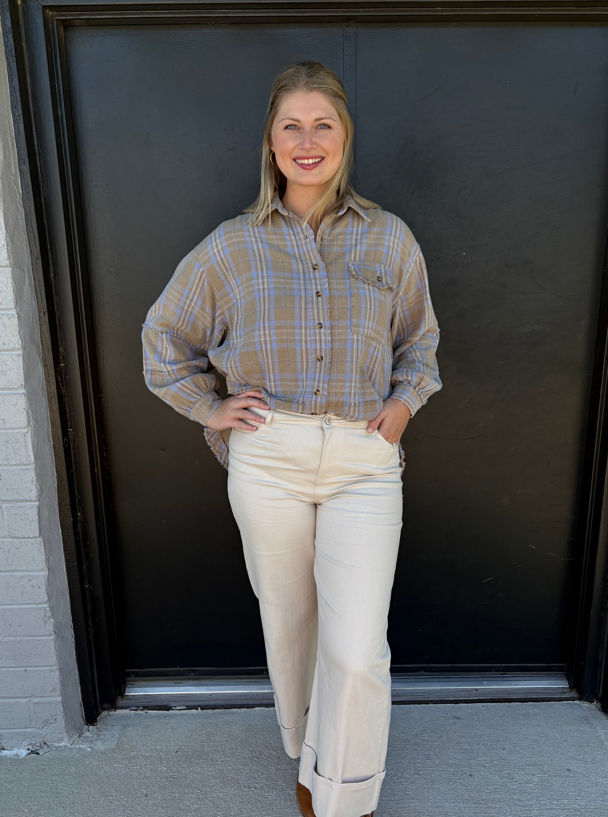 Elevate your casual wardrobe with the Vera Top, featuring a timeless mineral wash plaid pattern that adds effortless style. Crafted for comfort and versatility, this top pairs perfectly with jeans or skirts, making it your go-to choice for laid-back days or casual outings. Embrace a relaxed yet polished look that keeps you comfortable and confident all day long.